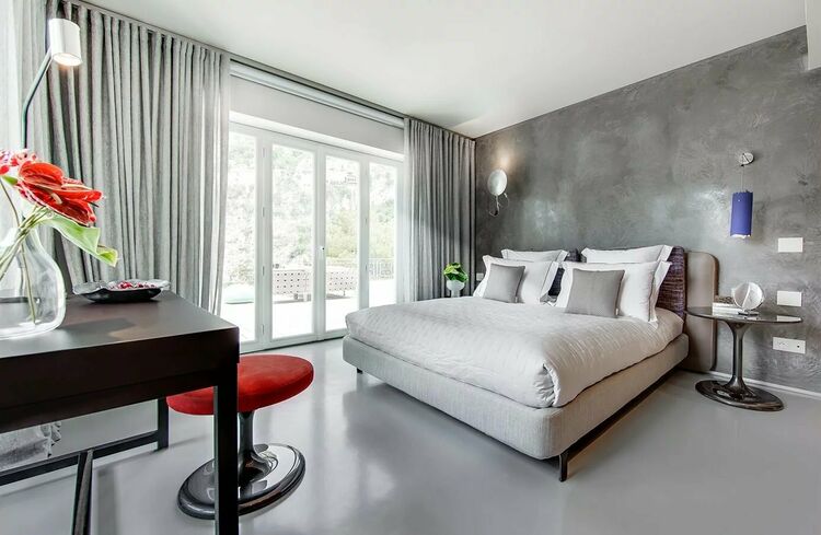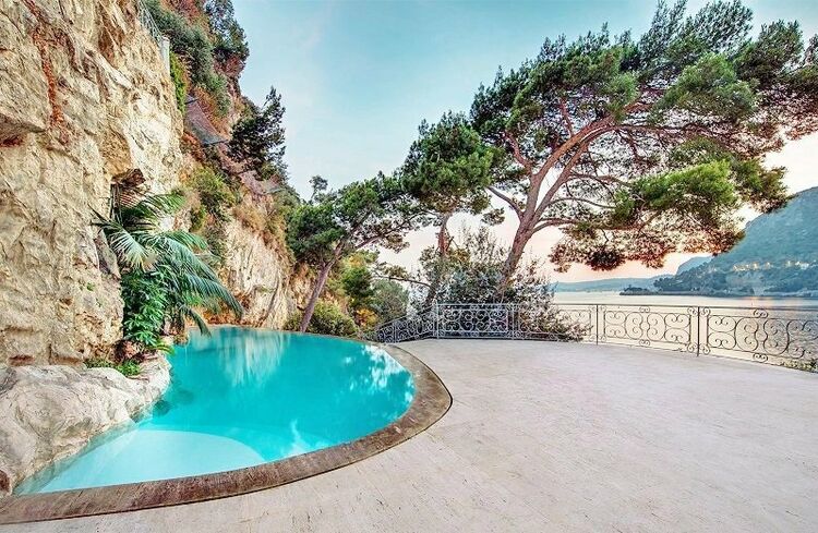 Implantée sur un terrain de 4500 m², la villa dispose d'un accès direct à la plage et d'un ponton privé. De grandes terrasses à chaque étage surplombent une piscine chauffée, élégamment intégrée dans les pierres naturelles de la propriété.