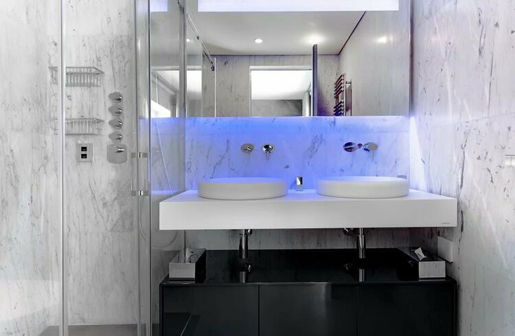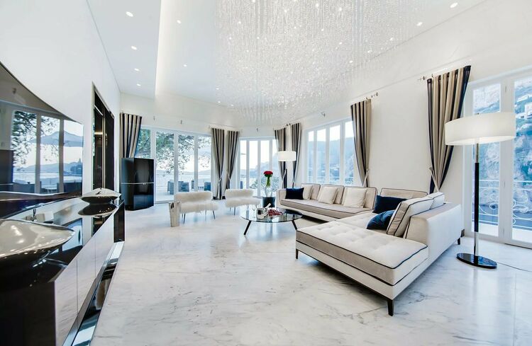 Cette propriété de 588 m², offrant une vue à couper le souffle sur la mer, s'étend sur cinq niveaux. L'entrée spacieuse s'ouvre sur trois superbes pièces de réception, toutes donnant sur une vaste terrasse. La villa comprend sept chambres, dont trois chambres de maître, ainsi qu'un sauna et un hammam. Un ascenseur ultramoderne relie les différents niveaux pour un confort optimal.